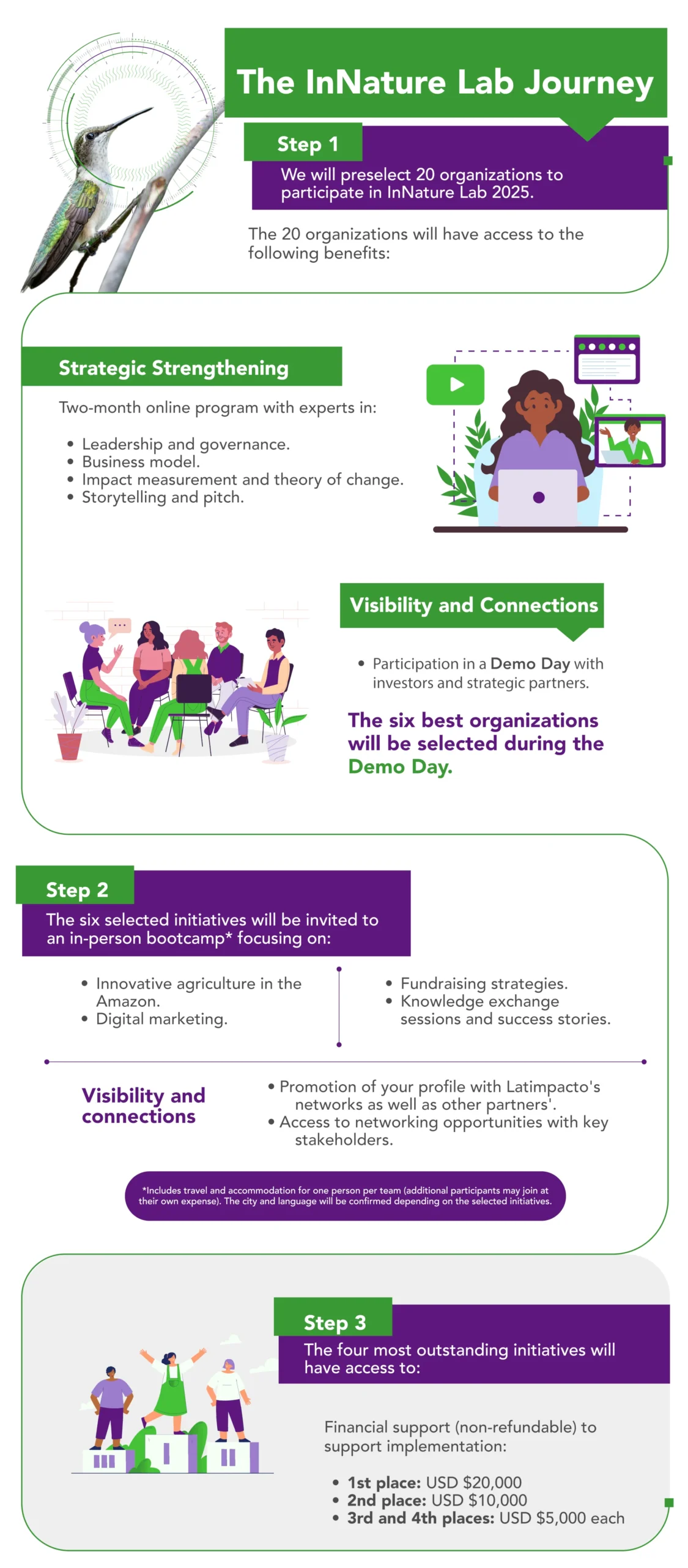 InNature Lab is a regional initiative that seeks to close the climate change adaptation gap from nature. The laboratory will accompany innovative solutions that strengthen the resilience of social-ecological systems in the Amazon and related territories and the communities that depend directly on them.