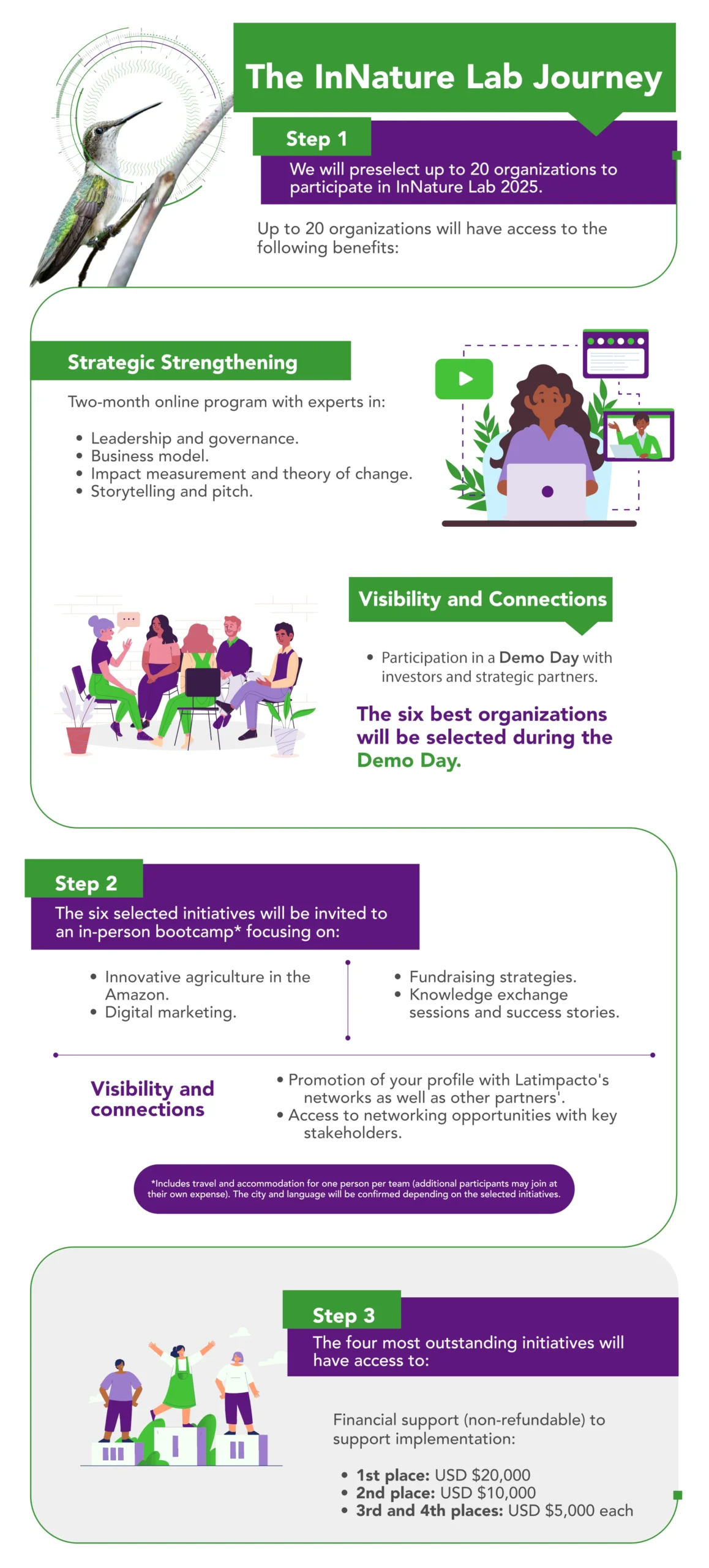 InNature Lab is a regional initiative that seeks to close the climate change adaptation gap from nature. The laboratory will accompany innovative solutions that strengthen the resilience of social-ecological systems in the Amazon and related territories and the communities that depend directly on them.
