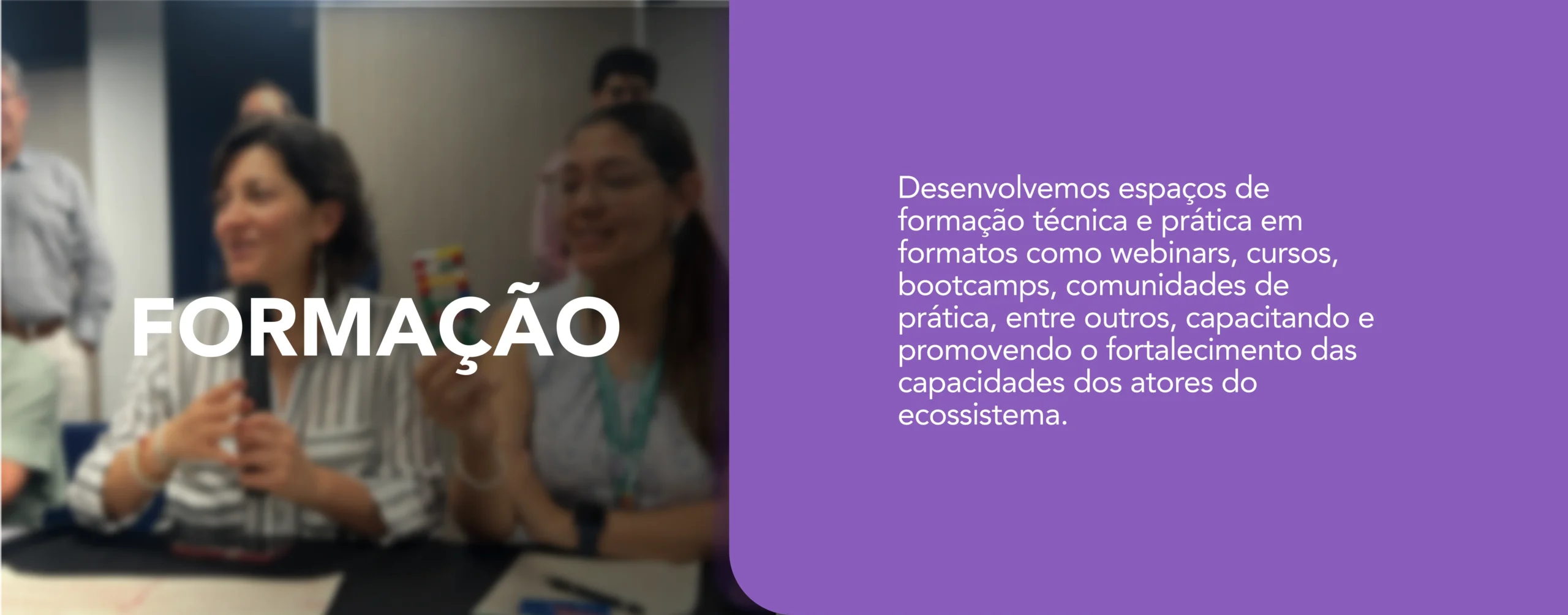 Calendário de eventos Saiba mais sobre nosso programa de treinamento, projetado para fornecer ferramentas e conhecimento inovadores que aumentarão seu impacto no setor. Veja mais Sessões pré-gravadas Se você quiser entender os fundamentos do continuum de capital, finanças inovadoras, suporte não financeiro e medição de impacto, acesse as sessões pré-gravadas e fortaleça seu conhecimento sobre o ecossistema de impacto.