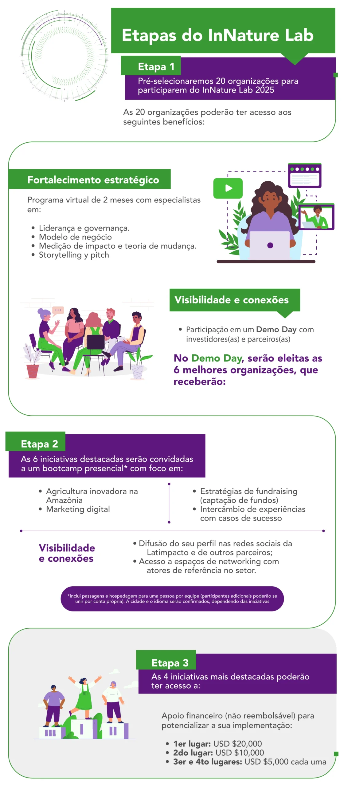O InNature Lab é uma iniciativa regional que busca fechar a lacuna de adaptação às mudanças climáticas a partir da natureza. O laboratório acompanhará soluções inovadoras que fortaleçam a resiliência dos sistemas socioecológicos na Amazônia e territórios relacionados e as comunidades que dependem diretamente deles.